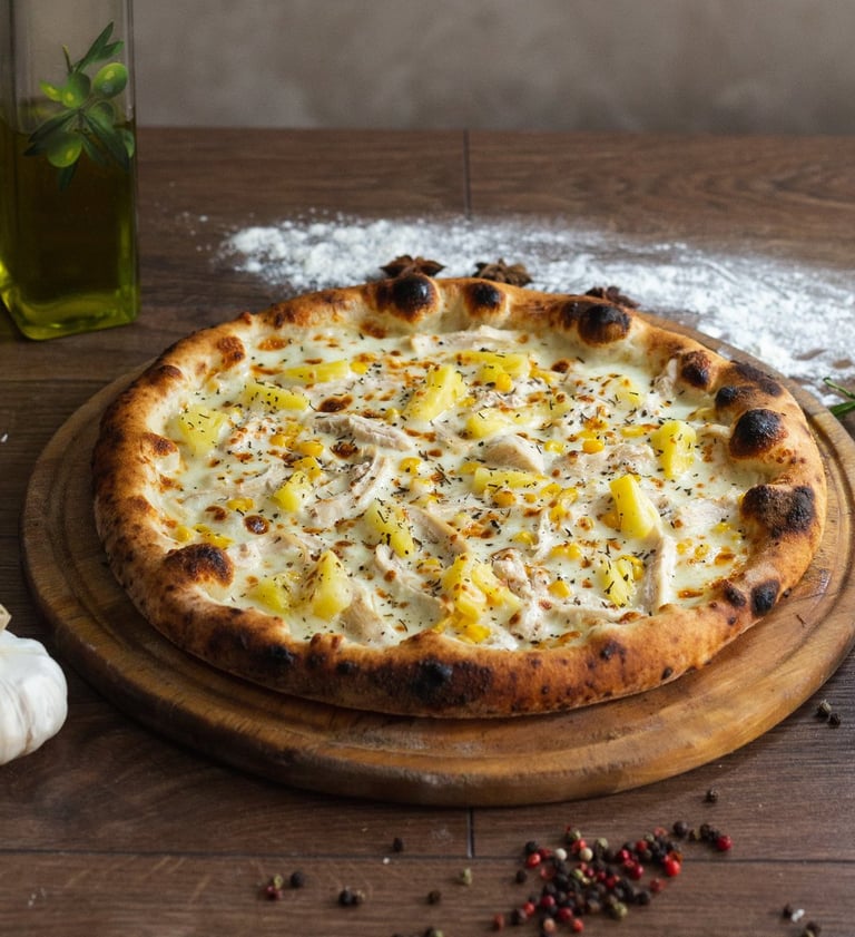 Tomato, fior di latte, cooked ham, fresh champignon mushrooms, artichokes, black olives, tomatoes