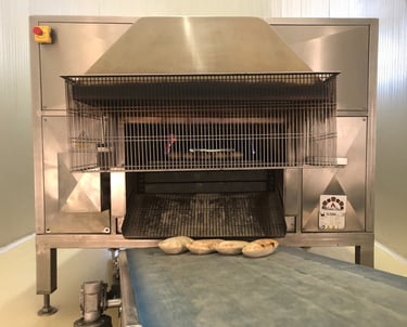 Il forno a Tunnel WAGON FIRE, brevettato dal maestro Gaetano, utilizza pietra refrattaria e un nastro trasportatore in pietra vulcanica.